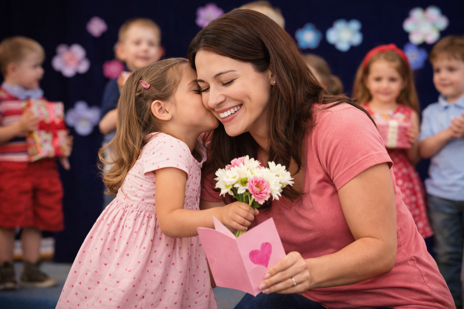 A special celebration where children perform on stage and present ceremonial gifts to their mothers, creating beautiful and memorable moments together.