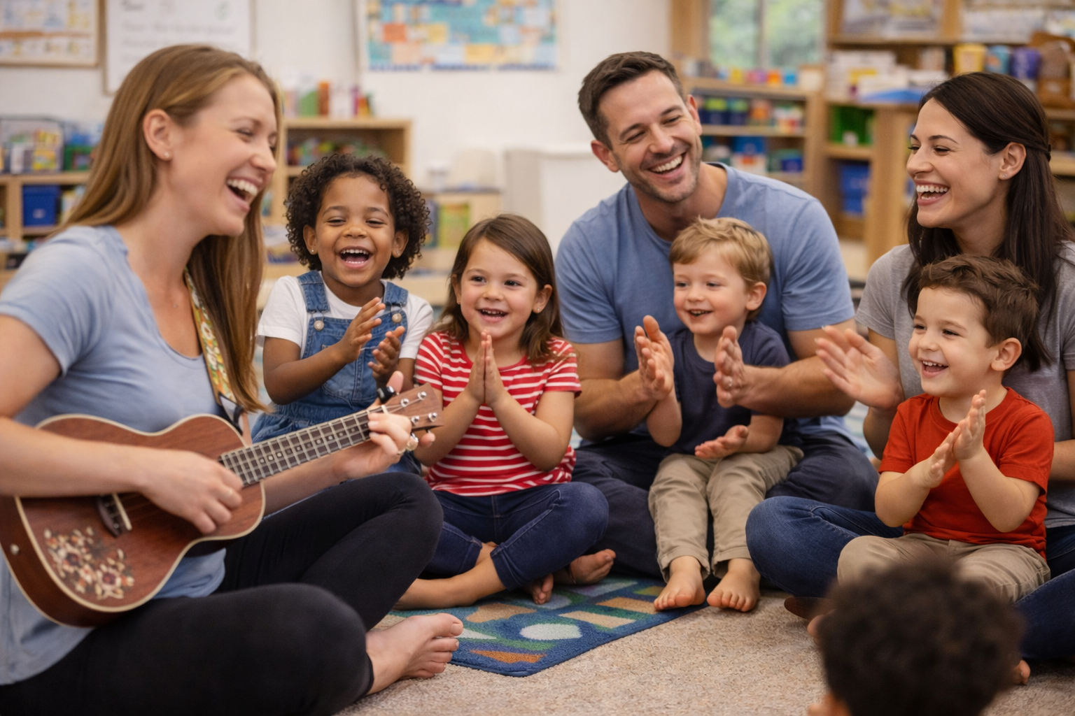 A joyful musical session where parents and children sing all-time favourite songs together, accompanied by our music teacher and ukulele.